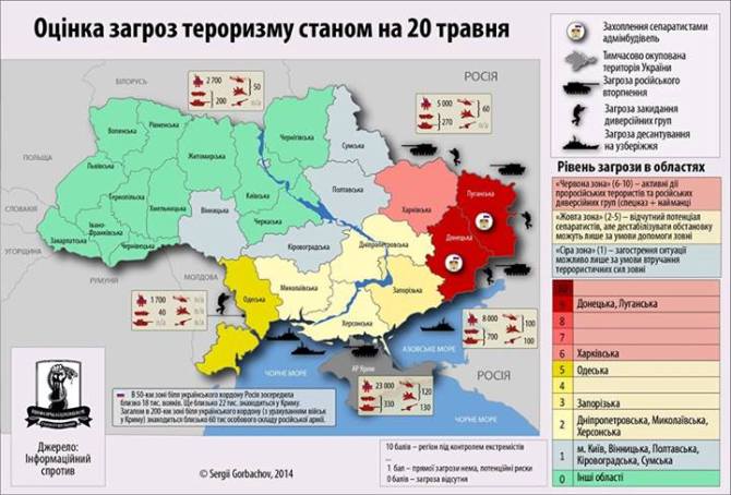 Группой «Информационное Сопротивление» оценен уровень угрозы терроризма в регионах Украины по состоянию на 20 мая.