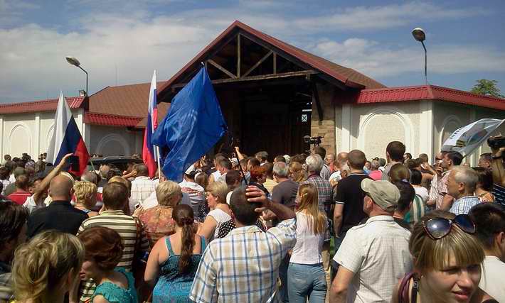 «Мирные» люди штурмуют резиденцию Ахметова: мы пришли брать свое (ФОТО)