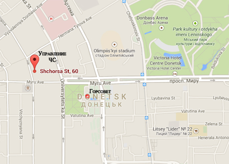 В двух кварталах от управления МЧС на соседней улице находится здание Донецкого горсовета.