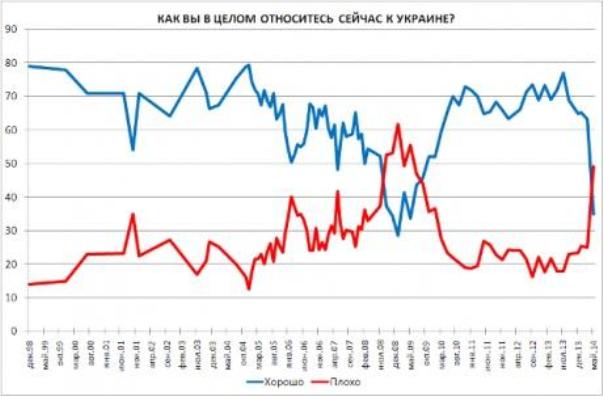 За май 2014 года в России почти в два раза возросло количество людей, которые плохо относятся к Украине. Об этом свидетельствуют данные опроса «Левада-Центра».