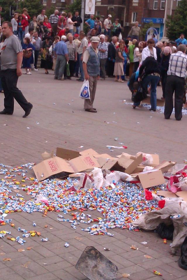 В Донецке конфеты давили ногами, «защищая детей от Порошенко» (ФОТО)