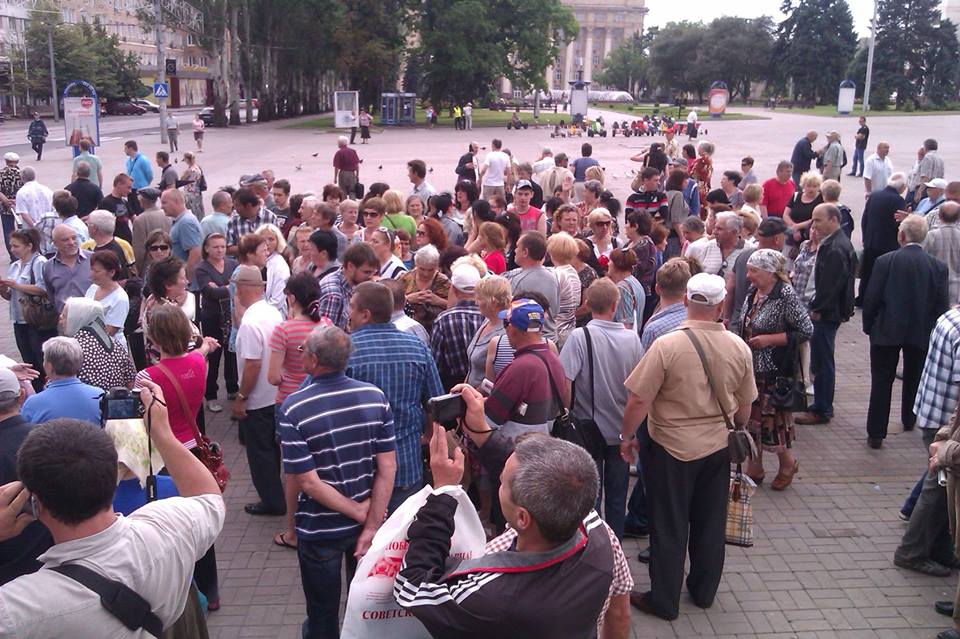 В центре Донецка прошла акция "Защитим детей от Порошенко". Об этом сообщила пользователь Facebook Анна Рыбникова со ссылкой на Юлию Клименко.