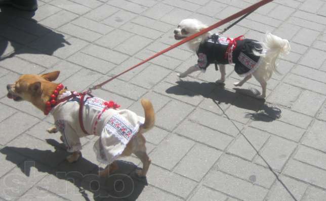Интересно, что примерно за эти же деньги можно одеть в украшенную орнаментом одежду и домашних любимцев. Для маленькой собачки вышитая рубашка будет стоить 60 гривен, платье – от 100 гривен. А льняная сорочка с узором, выполненным вручную, обойдется в 250 гривен.