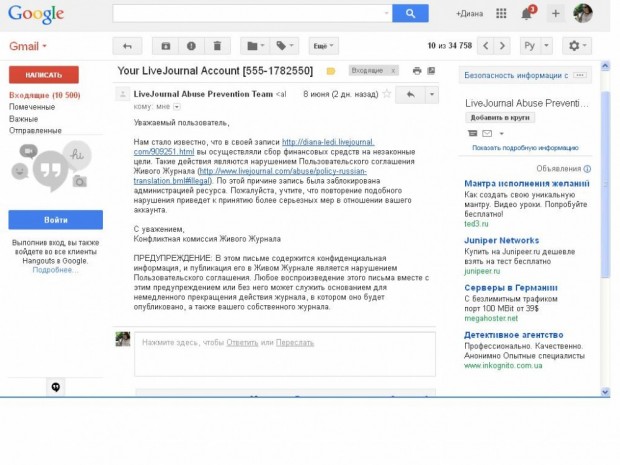 Диана Макарова, которая больше 7 лет вела популярный блог под ником diana-ledi, рассказала о своем случае блокировки.