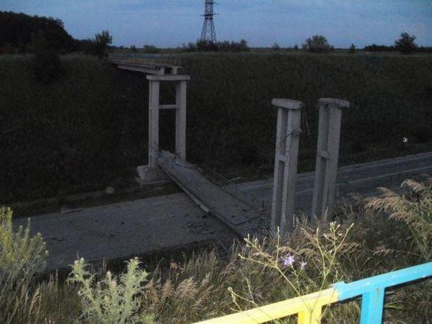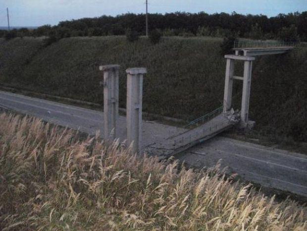 Террористы взорвали пешеходный мост, чтобы перекрыть трассу на Луганск (ФОТО)