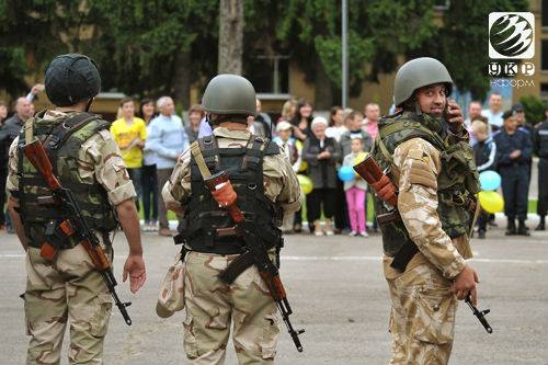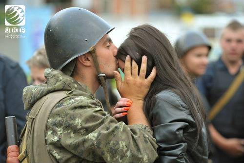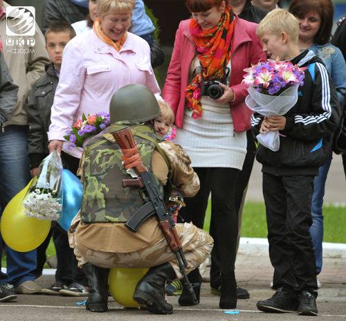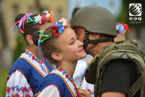 Личный состав львовского полка Нацгвардии Украины приветствовали как настоящих героев. По давней народной традиции девушки в украинских костюмах встречали военнослужащих хлебом-солью.