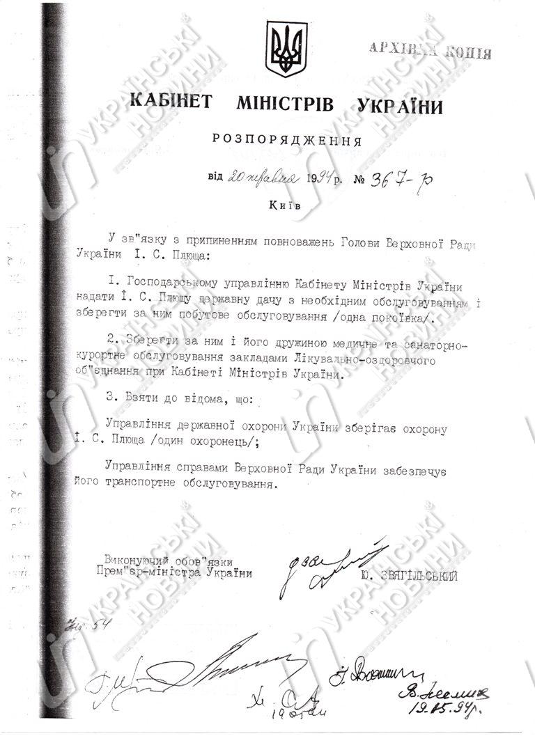 Какими бывают «сервисные пакеты», полностью ложащиеся на бюджет, легко представить по отдельному правительственному постановлению для экс-спикера Ивана Плюща от того же 1994 года, ставшему достоянием СМИ в 2009 году.