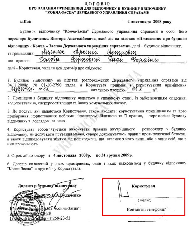 При этом Арсений Яценюк заявил, что никогда госдачей не пользовался, хотя и на самом договоре от 2008 года стояла его подпись.
