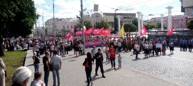 Около 300 человек протестуют против АТО по случаю годовщины начала ВОВ в Харькове.