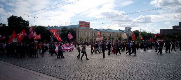 Они собрались около 15:00 возле фонтана «Зеркальная струя» в сквере Победы и прошли по улице Сумской до памятника Ленину на площади Свободы, где начался митинг, сообщает «Левый берег» со ссылкой на «Униан».