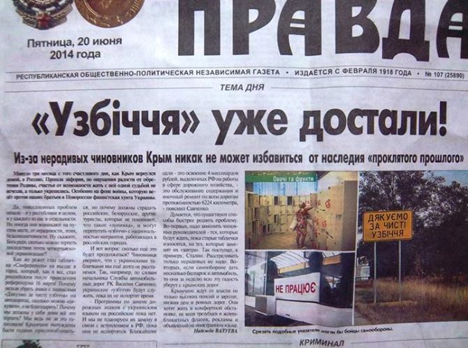 В газете «Крымская правда» от 20 июня вышла статья под названием «Узбіччя» уже достали».