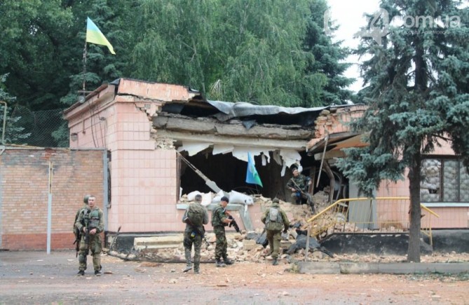 Выстрелами из танка сильно поврежден пропускной пункт воинской части, а также здание между верхним и нижним КПП, сообщает сайт Артемовска 06274.