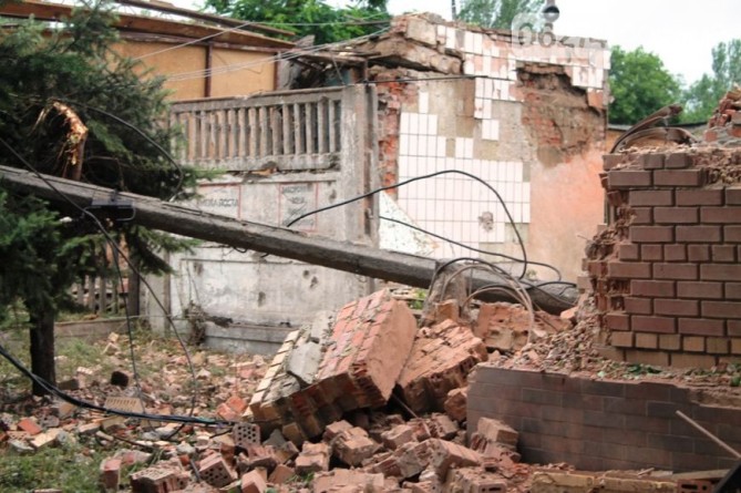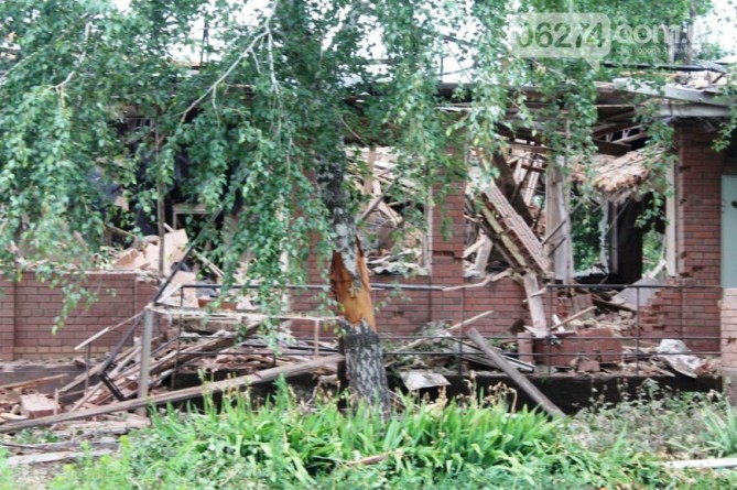 Следы танка можно увидеть по улице Носакова. В жилых домах снова вылетели окна от ударной волны после мощных взрывов. Повреждены линии электропередач.