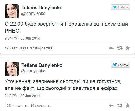 Позже стало известно, что обращение Порошенко о решении относительно действий в зоне АТО запланировано на 22:00.