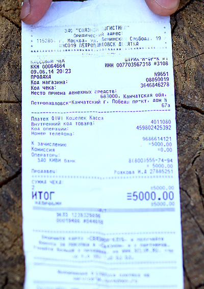 Кроме того, был найден кассовый чек на получение денежного перевода на суму 5000 руб. Перевод был получен по адресу: РФ, Камчатская обл., г. Петропавловск-Камчатский.