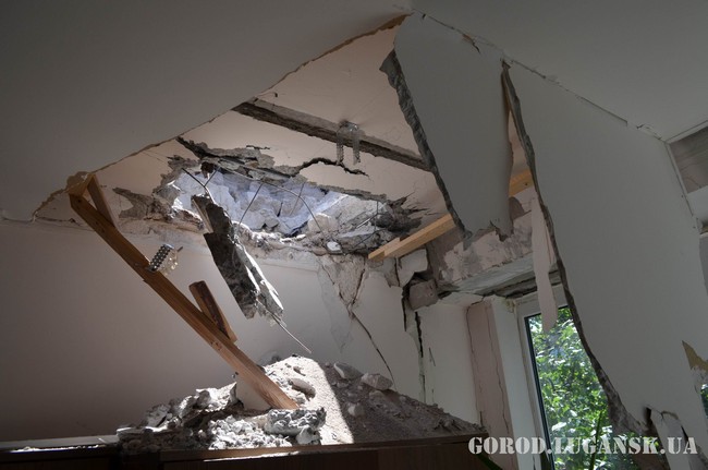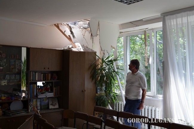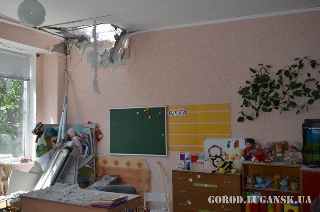 В Луганске снаряд пробил крышу в детском саду (ФОТО)