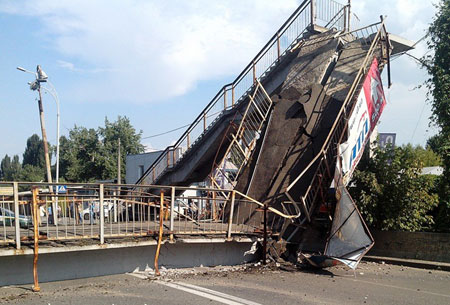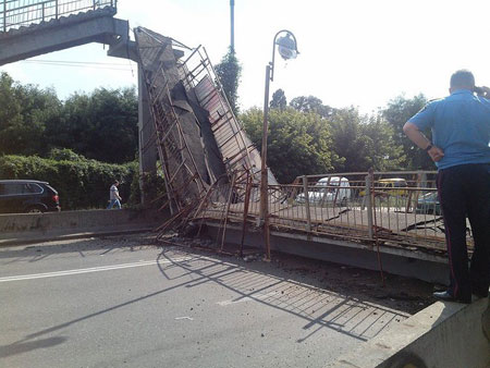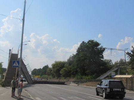В Киеве грузовик снес пешеходный мост (ФОТО)