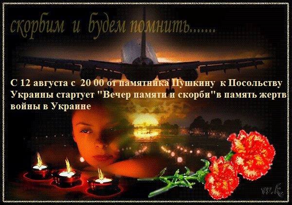 12 августа в 20:00 в Москве состоится "Вечер памяти и скорби" по жертвам войны на Украине. Об этом говорится в сообщении соответствующей группы, созданной в Facebook.