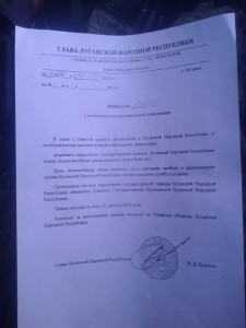 Как оказалось, приказ вступил в силу еще 11 августа, а его выполнение контролирует так называемый «министр обороны», коим до последнего времени был Игорь Плотницкий.