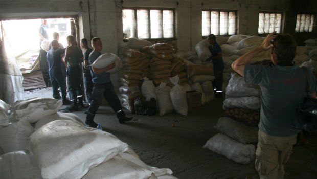 Перемещены в склады Старобельска продукты питания (овощи, крупы, сахар, муку, масло, консервы, мед, чай, вода, медикаменты и другие предметы первой необходимости) были согласно перечню переданы руководителем колонны и приняты представителями Международного комитета Красного Креста. На территории складских помещений городов Старобельск и Северодонецк, где некоторое время будет сохраняться груз, совместными усилиями спасателей и местных отделений милиции обеспечено охрану.