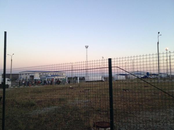 Первый «КамАЗ» уже находится в зоне границы, еще 8 ждут, чтобы сделать то же.