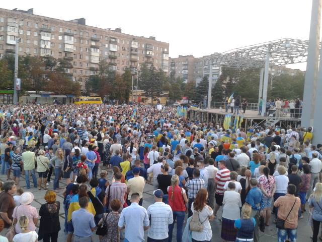 Перед митингующими выступил городской голова Юрий Хотлубей, сообщает Новости Донбасса.