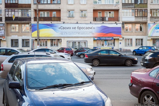 На одном из домов российского города Тверь появился баннер с призывом собрать гуманитарную помощь жителям Украины. Фото баннера было размещено одним из пользователей Livejournal.