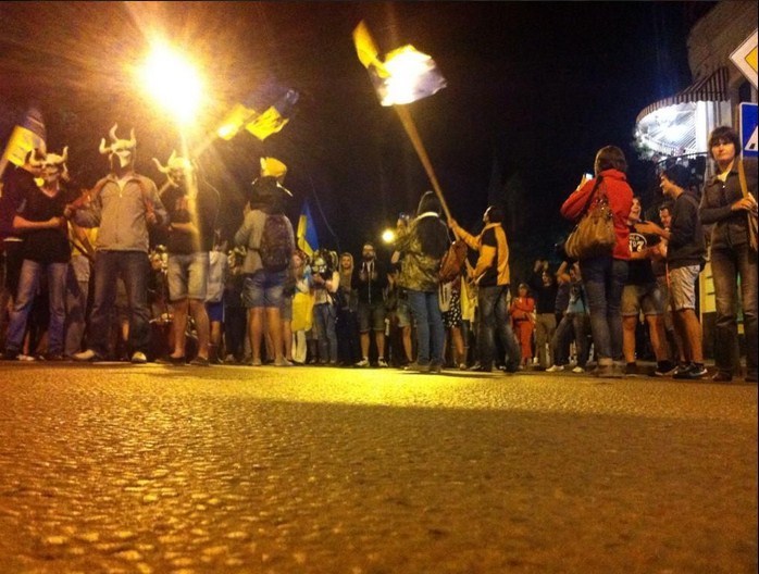 При этом жители расположенных поблизости домов выглядывали из окон и размахивали флагами Украины.