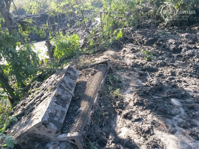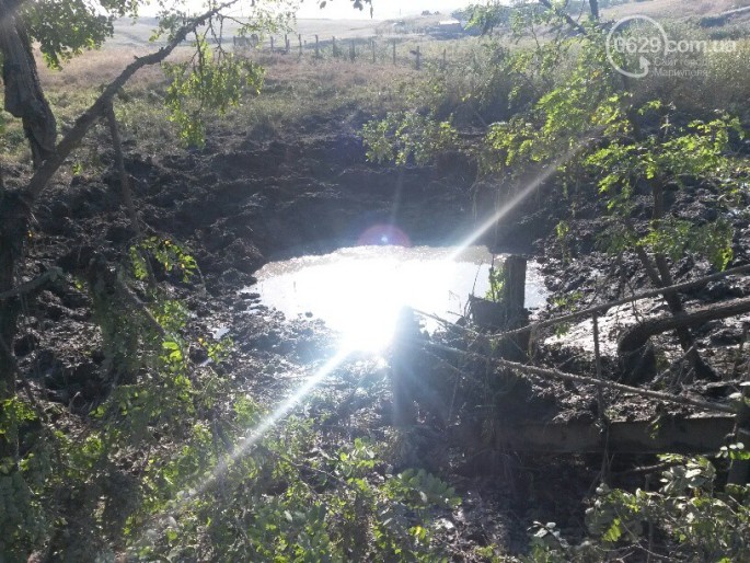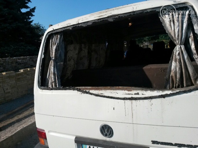 Один снаряд разорвался возле притока реки Кальчик. Ударной волной были выбиты стекла в микроавтобусе «Фольксваген», припаркованном неподалеку. Сам автовладелец не пострадал, так как успел упасть на землю.