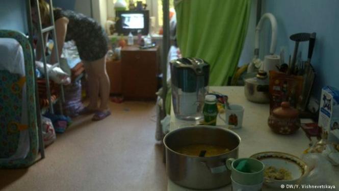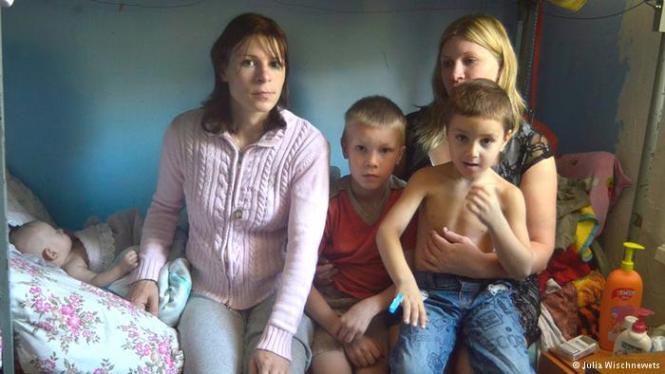 Сестры Татьяна Мурашова и Екатерина Усенко с тремя детьми приехали в Москву из Артемовского района Донецкой области. Сначала жили в гостинице, потом в общежитии ООО «Золотая гавань» в районе Печатники. Первые два месяца владелец общежития разрешал беженцам жить бесплатно. С 1 сентября они должны платить по 200 рублей в сутки за одно место.