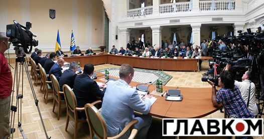 В заседании принимают участие Президент Украины Петр Порошенко, председатель Верховной Рады Александр Турчинов, председатели областных государственных администраций и города Киева.