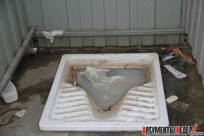 В душевых, несмотря на сильный ветер и низкую температуру, подают только холодную воду. Впрочем, желающих воспользоваться душевой немного – уборщица сюда заглядывает нечасто.