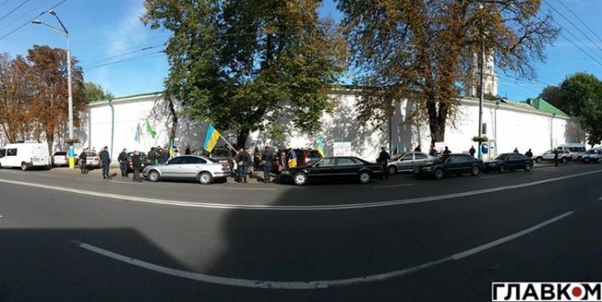 Возле Мыстецького Арсенала в Киеве, где сейчас идет пресс-конференция Президента Украины Петра Порошенко, проходит митинг харьковских активистов.
