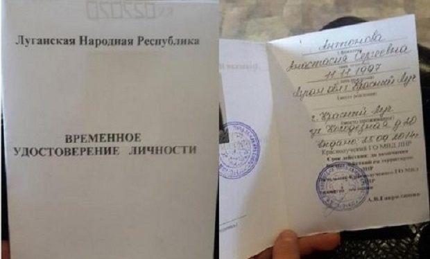 В соцсетях пользователи опубликовали фотографию «временного удостоверения личности» ЛНР, обладательницей которого является жительница Красного Луча Анастасия Антонова, 1997 года рождения, пишет Информатор.