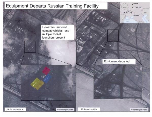 «Гаубицы, бронированные боевые машины и реактивные системы залпового огня, которые, как мы считаем, могут быть предназначены для сепаратистских сил, продолжают покидать место развертывания вблизи российской границы», - написал он.