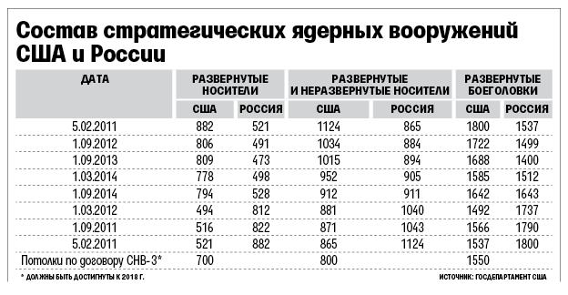 Впервые с начала 21-го века Россия сравнялась с Америкой по числу всех носителей ядерных вооружений в составе Стратегических ядерных сил (СЯС) и по количеству боеголовок на развернутых носителях СЯС. Это следует из опубликованной в четверг госдепартаментом США информации, полученной в ходе состоявшегося 1 сентября обмена данными о стратегических вооружениях с Россией.