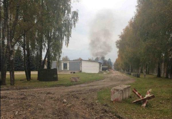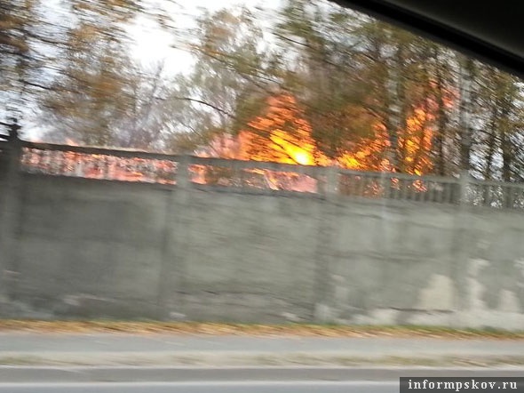Как передаёт корреспондент Псковского агентства информации, за забором части наблюдается пламя и дым.