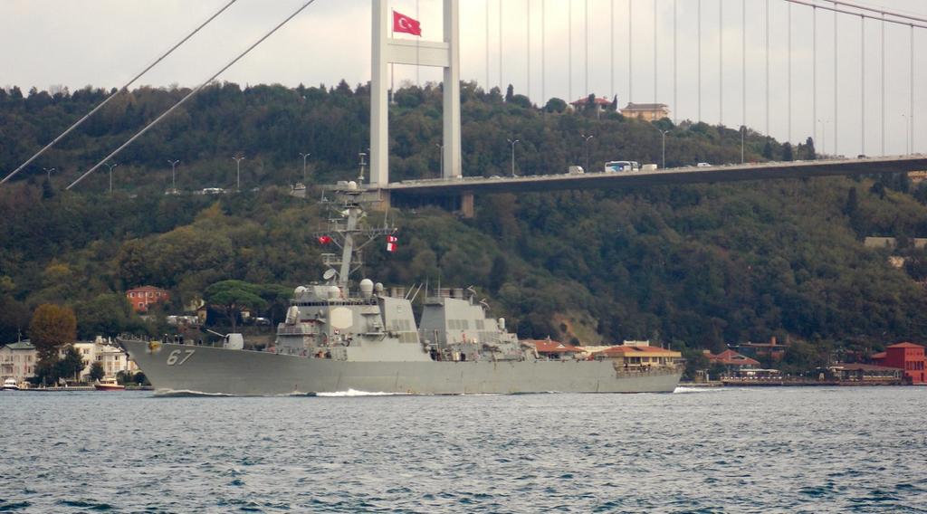 Данный корабль является флагманом 6 флота США. Дипломатическая миссия не уточняет, какие именно боевые задачи должен выполнять фрегат в Черном море, и отмечает, что пролив он проходил в субботу, 11 октября.