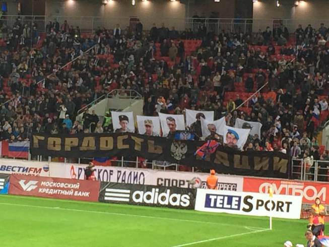 На матче с Молдовой российские фаны вывесили флаг «ДНР» и портреты террористов (ФОТО)
