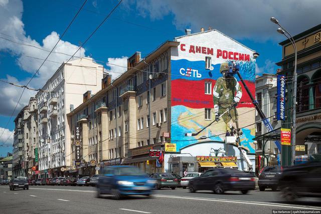 Московские власти начали закрашивать бездарные агитационные изображения.