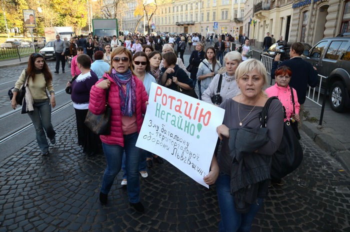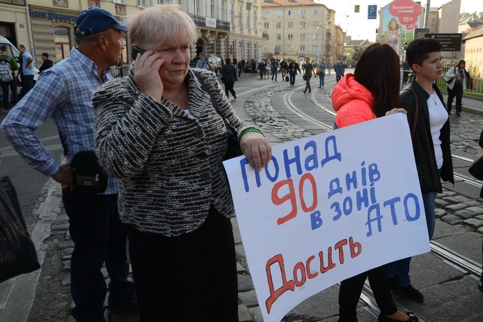 Несколько десятков родственников солдат перекрыли один из самых загруженных перекрестков в центре города. Бойцам говорили, что батальон был создан для обороны Львовщины, однако мужчин отправили на Восток. Там они находятся уже более трех месяцев. Некоторые из бойцов, которые уже вернулись домой, требовали ротации и говорили о том, что воевать на Донбассе нечем.