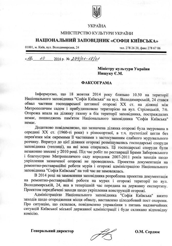 В заповеднике «София Киевская» обвалилась часть стены (ФОТО)