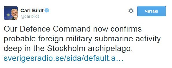 Об этом в своем Twitter сообщил экс-глава МИД Швеции Карл Бильдт.