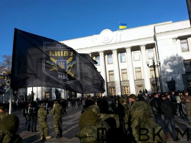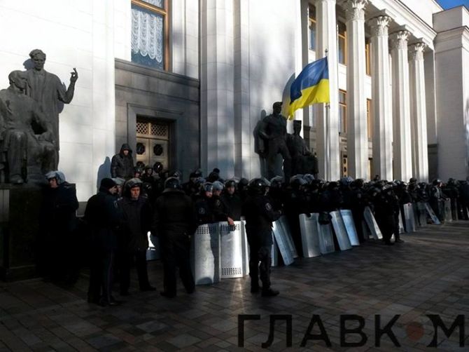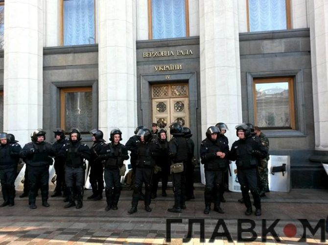 При этом здание парламента, где сегодня в 10:00 должно начаться внеочередное заседание ВР, по периметру окружено несколькими сотнями правоохранителей в бронежилетах, другой защитной экипировке и со щитами.
