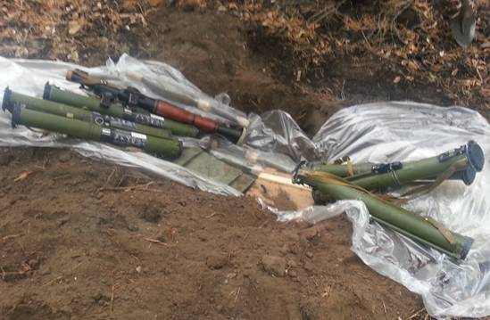 «В законспирированном подземном укрытии в лесополосе в с. Передильское Станично-Луганского района правоохранители изъяли «РПГ-7», шесть «РПГ-26», три кумулятивных снаряда «ПГ-7Л» с запалами, 20 гранат «РПГ-5» и более двух тысяч патронов автомата Калашникова», - информирует пресс-центр.