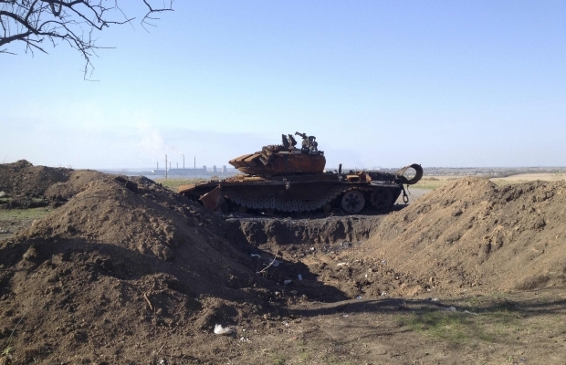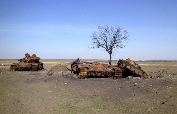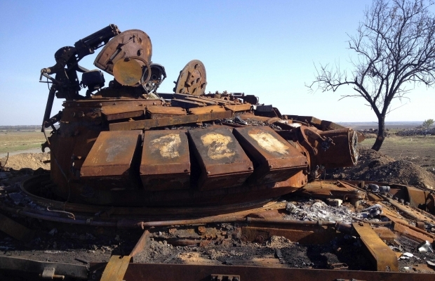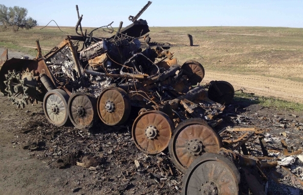 В обгоревших остатках двух танков, обнаруженных среди нескольких десятков сожженных машин вблизи села в Старобешевском районе Донецкой области, военные эксперты узнали российские, пишет агентство Reuters.