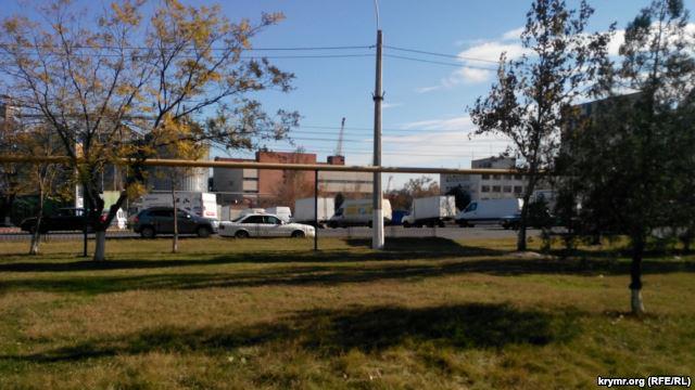 Грузовики скопились на территории возле керченского морского порта, рядом с крупным спальным микрорайоном.