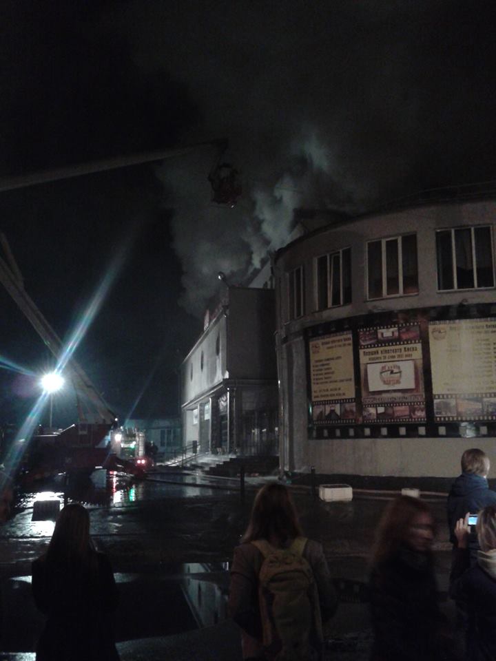 Как сообщил изданию очевидец происходящего, координатор программы «Солнечный зайчик» Алексей Чащин, возгорание случилось во время показа фильма. «Фильм шел уже 20 минут, когда с задних рядов донеслись крики «Дым!». Мы не сразу даже поняли, что случилось. Нам удалось быстро вывести людей с этого сеанса и из других залов «Жовтня». Первая пожарная машина приехала-очень быстро, остальные - когда дым начал валить из окон. Сейчас «Жовтень» продолжают тушить.