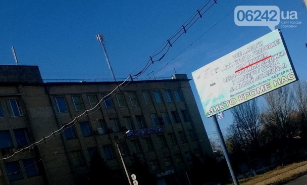 "Все налоги остаются в Горловке! ФормируЮм независимый бюджет!" - говорится на щитах, размещенных в разных районах города.