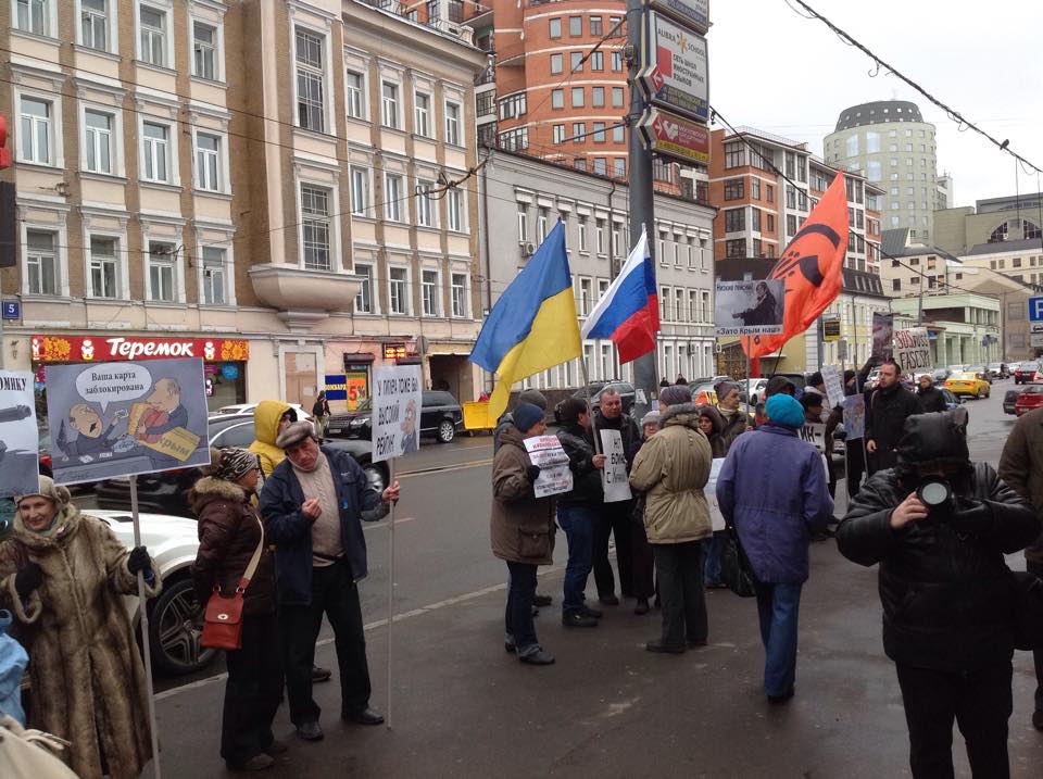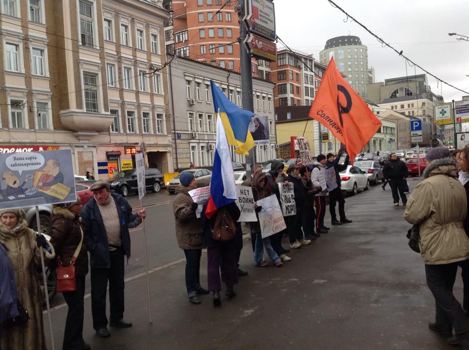 В Москве прошел организованный движением «Солидарность» согласованный пикет против политики президента России Владимира Путина по отношению к Украине. Об этом сообщается на странице мероприятия в Facebook. По словам организаторов, целью пикета было информирование граждан России о том, какие социально-экономические и политические последствия для них повлечет за собой конфликт России с Украиной. Акция проходила возле станции метро "Новослободская" и продлилась полтора часа.